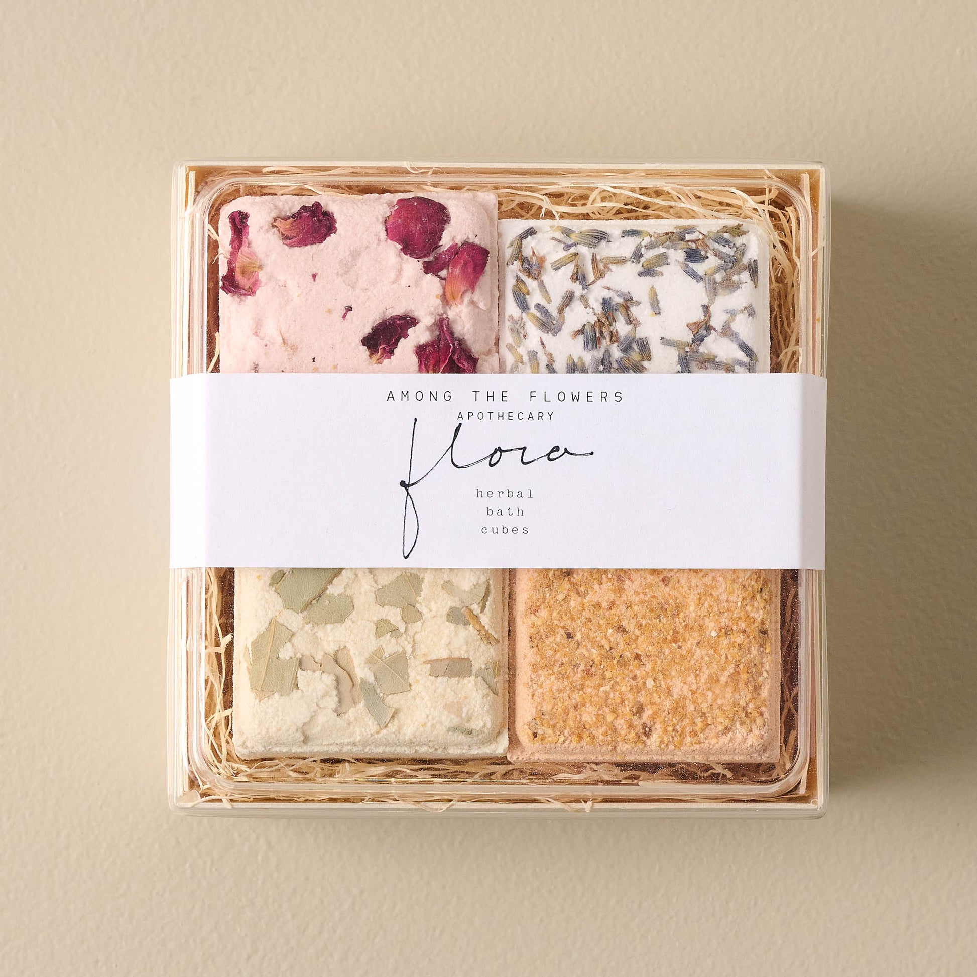 Take a moment just for you with the Flora Bath Cube Set by Among the Flowers. Inspired by the seasons, these four, naturally fizzing cubes are chock-full of dried florals, essential oils, and other nourishing ingredients to enhance your bathing routine. To use, add one cube to warm water and allow it to dissolve. Remove from the bath and allow it to dry for future uses. Made in the Sierra Nevada foothills.