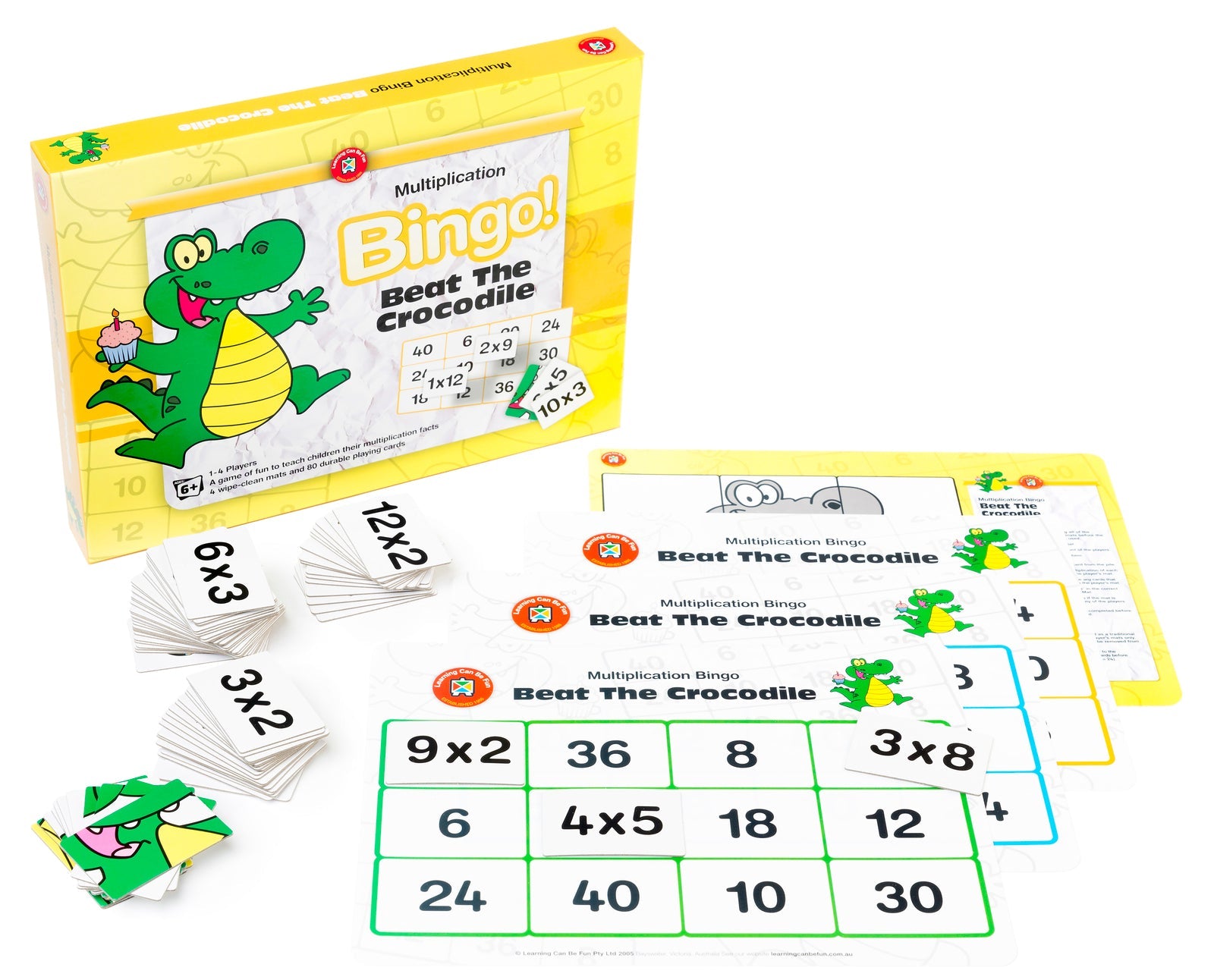 Beat The Crocodile (Multiplication Bingo) is played in a similar manner to traditional Bingo.