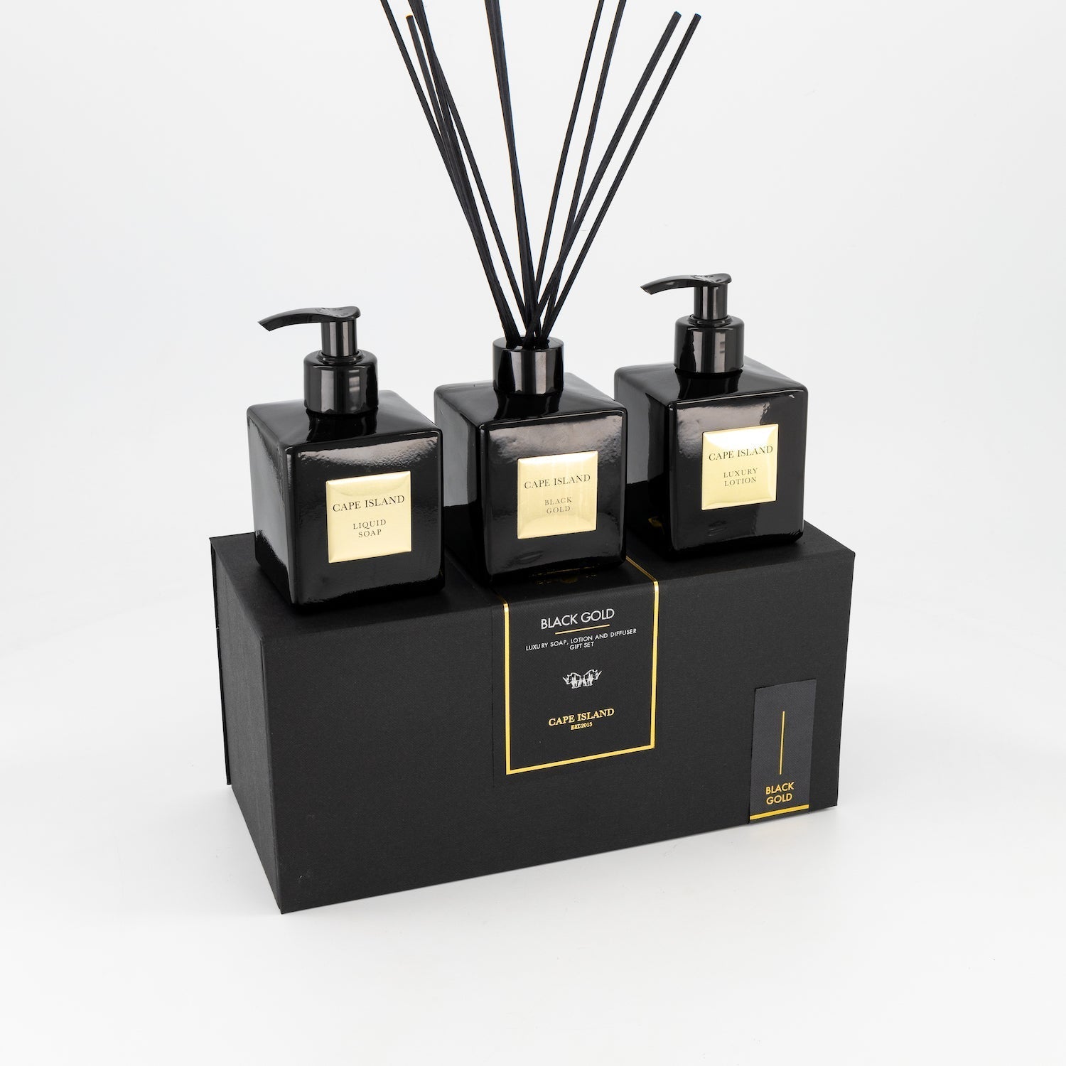 Honouring Africa’s natural wealth through the medium of fragrance with the ultimate Black Gold home fragrance set. Beautify your favourite space in an instant – our iconic bottle has a refillable, timeless design and will add a touch of luxury to any interior. Be bold with the newest fragrance, Black Gold.