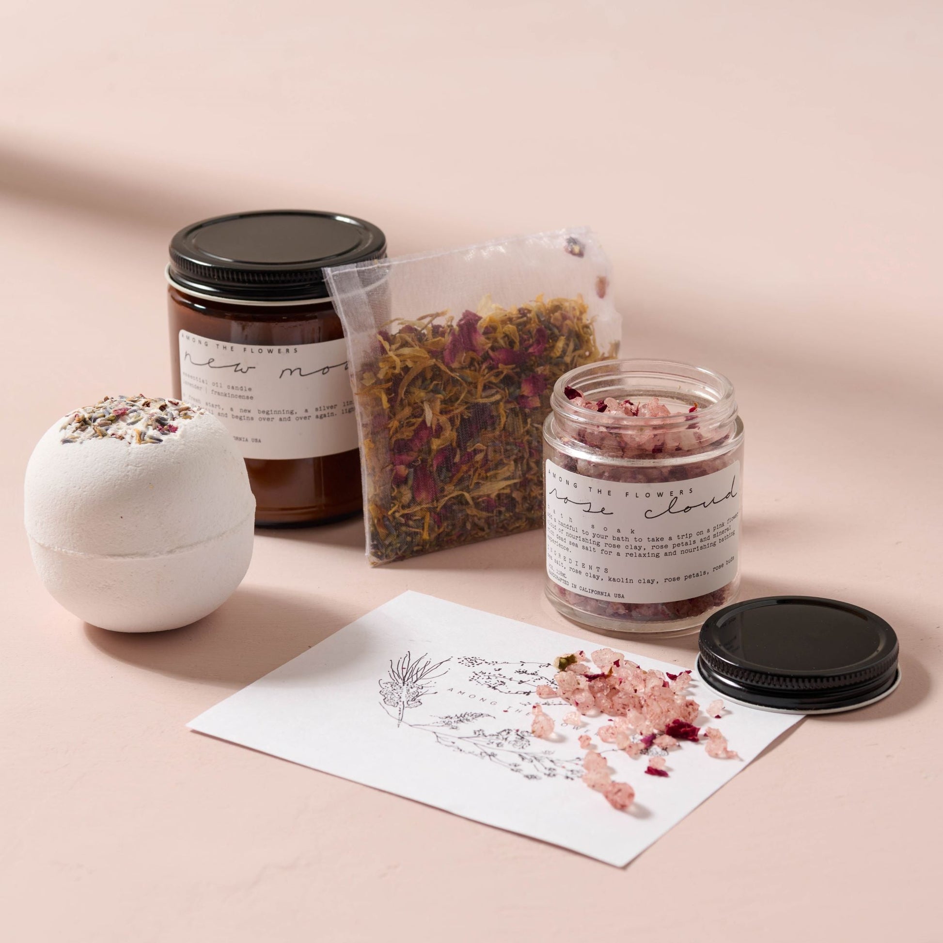 - Bath Soak / 4oz enrich your next bath with a multitude of sea minerals and enzymes, rich with vitamins for replenishing skin. Flower petals float and allow their nutrients to absorb deep into pores.