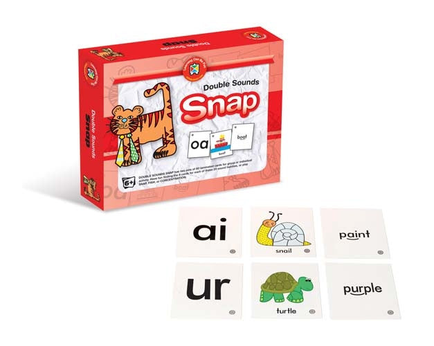 Double Sounds Snap will provide plenty of fun for the children as they find the eight cards for each of the 20 Sound Families or busy themselves playing Snap, Fish or Concentration. Sound families ai, ar, au, aw, a-e, ea, ee, er, ey, ir, i-e, oa, oo (as in hook), oo, (as in moose), or, ou, ow, (as in cow), ow, (as in bow), o-e, ur.