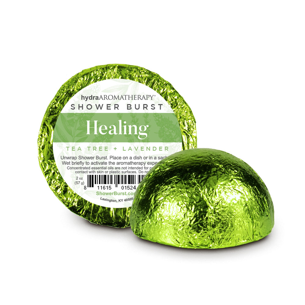Transform an ordinary shower into a refreshing, clearing aromatherapy experience with the multiuse hydraAROMATHERAPY Healing Shower Burst. Just place in the shower and let indirect spray activate the aroma. Wrapped in colorful foil, this eye-catching retail must-have is an easy sell for customers looking for a unique way to enjoy aromatherapy daily. Made with pure tea tree and lavender essential oils. 2 oz.