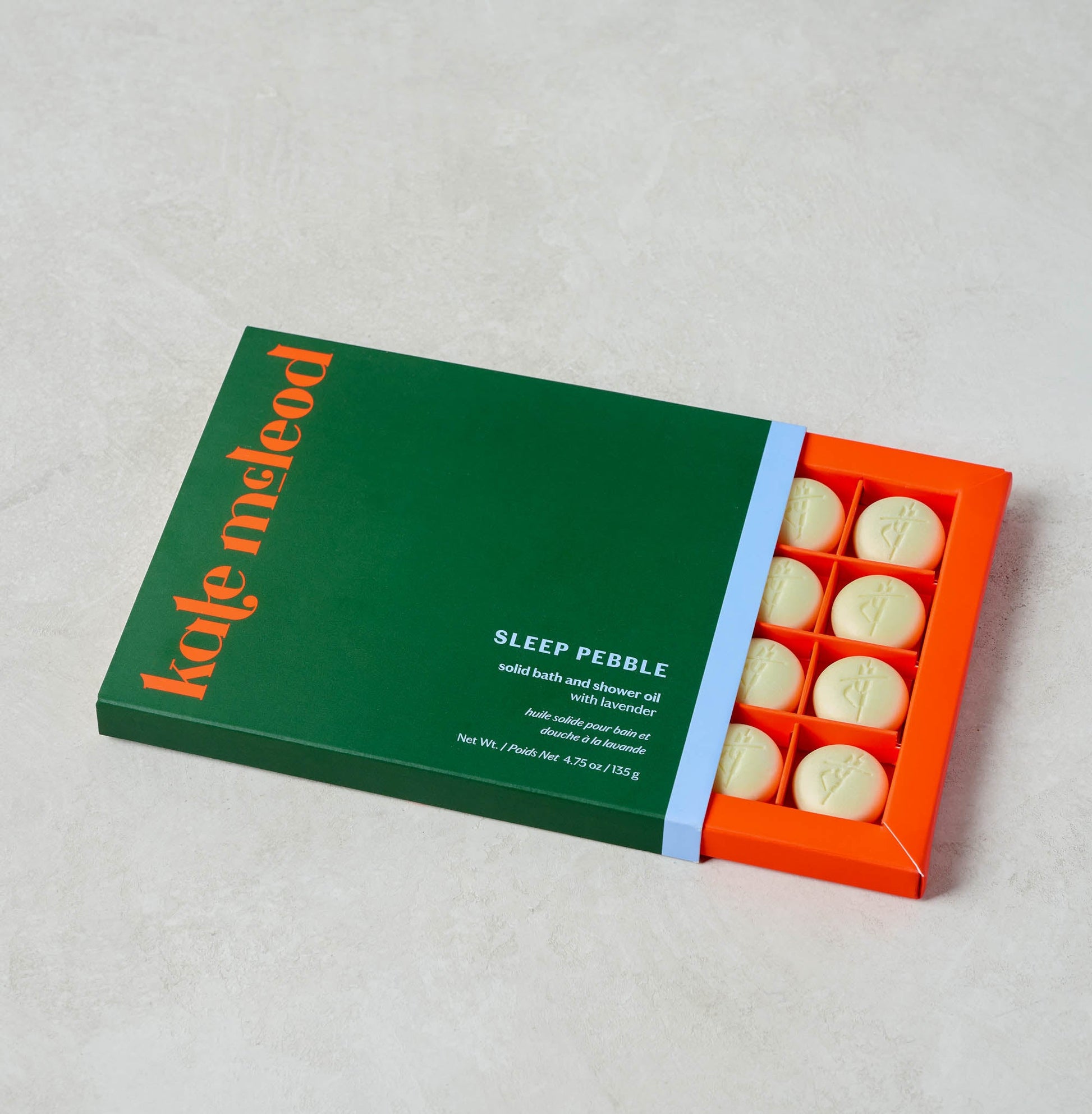 Transform your bath routine into a tranquil spa experience with the Sleep Pebble Tray by Kate Mcleod. Formulated with a nutrient-rich blend of nourishing cocoa butter, pure plant-based oils, and natural exfoliants, each pebble seamlessly melts into skin for head-to-toe moisture and exfoliation. With a calming lavender scent, each pebble serves as an aromatherapeutic bath soak or shower rinse. Pair with Body Mitt for an ultra-moisturizing body treatment.
