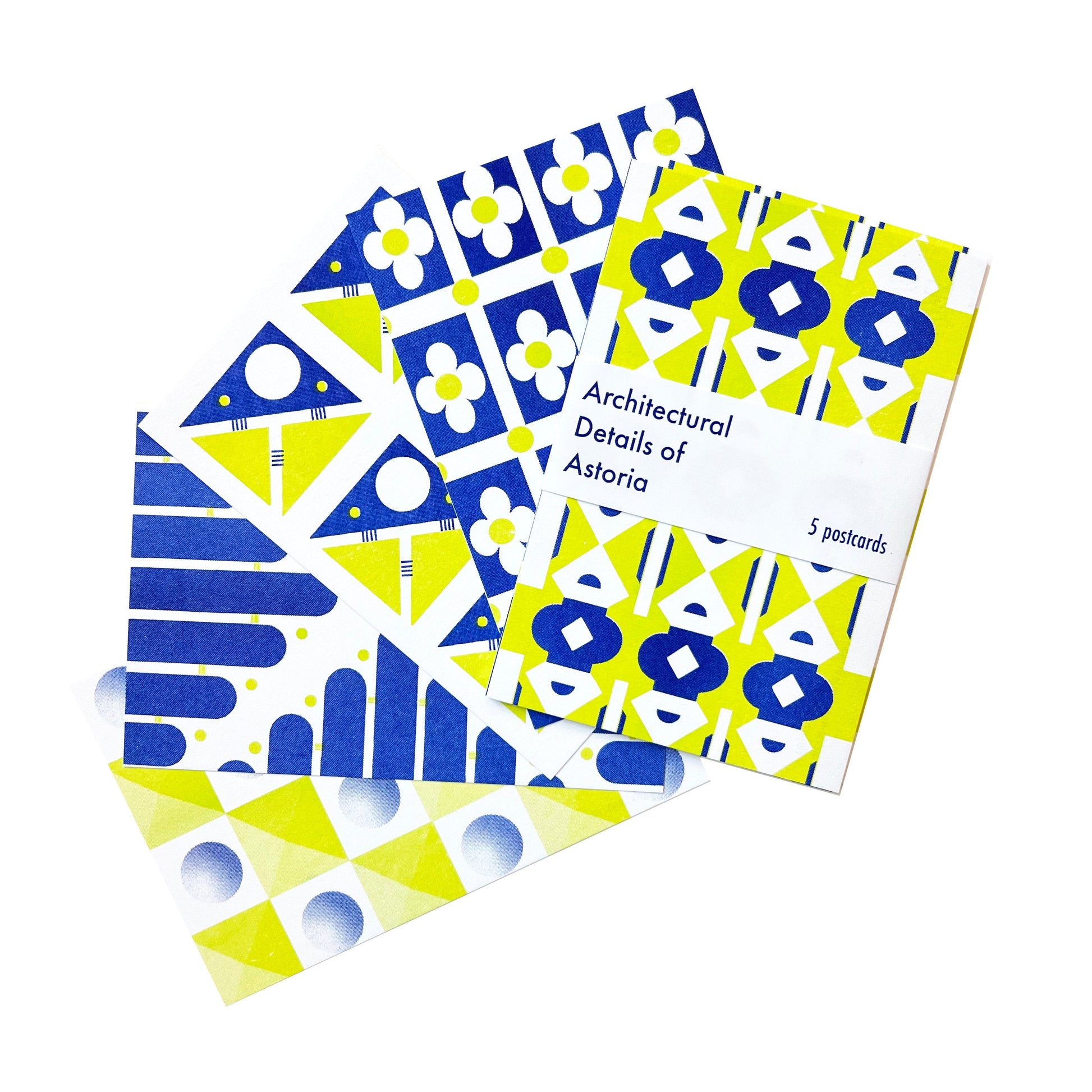 Set of 5 Risograph printed postcards featuring original designs based on the architectural details of some of my favorite buildings in Astoria, Oregon. Send them to your favorite people or hang them on the wall as mini art prints!