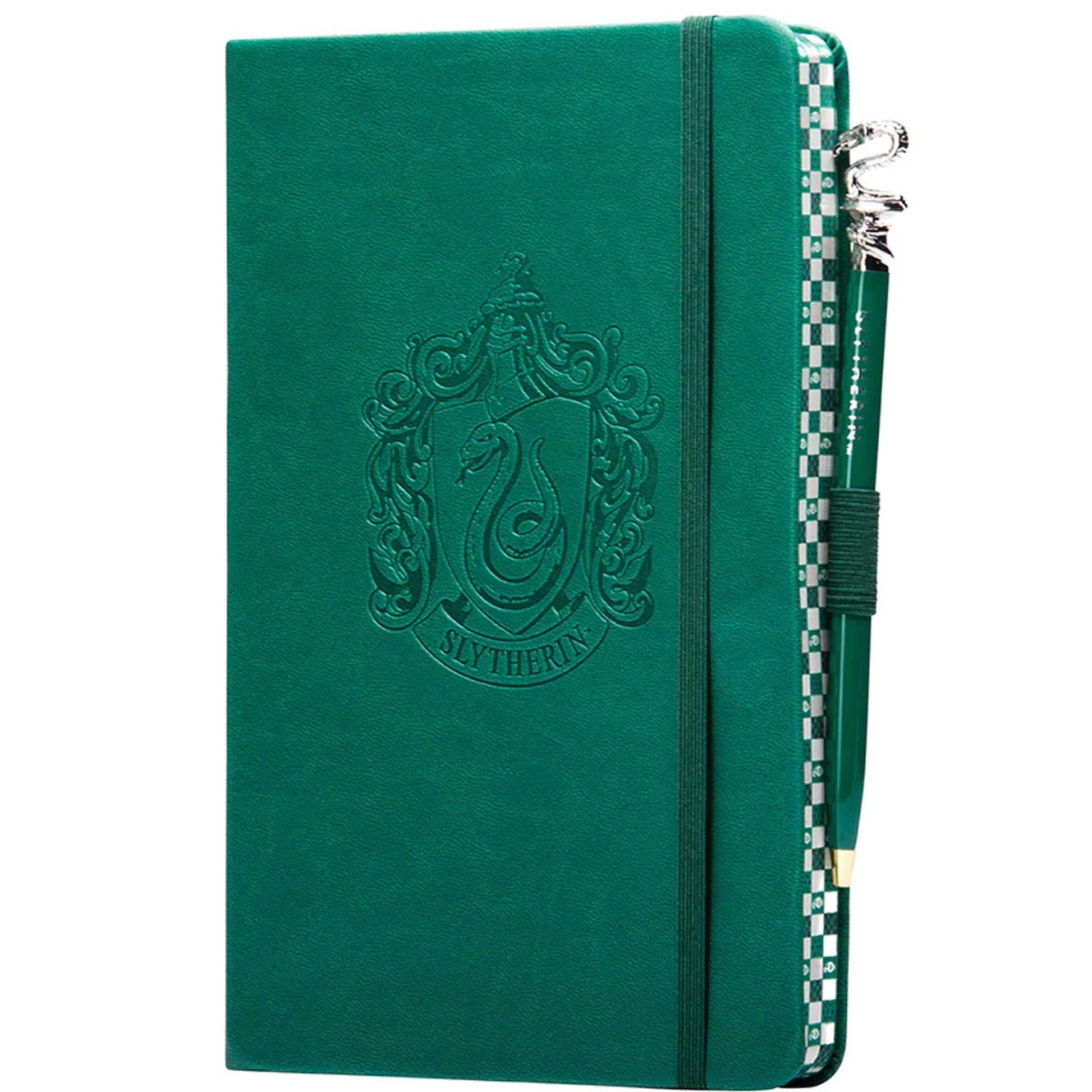 Keep notes in classic HOGWARTS style™ with this deluxe journal featuring the SLYTHERIN™ house crest and colors. Use the coordinating pen included to record your class notes, daily adventures, or any other writing needs.